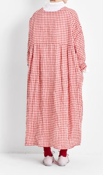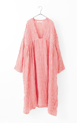 あざやかなギンガムチェック柄が目を惹くVeritecoeurオリジナル素材です。太番手のリネン糸を甘く平織りにした生地は洗いを掛けることで風合い良く、軽やかで春夏らしいボイル素材に仕上がっています。