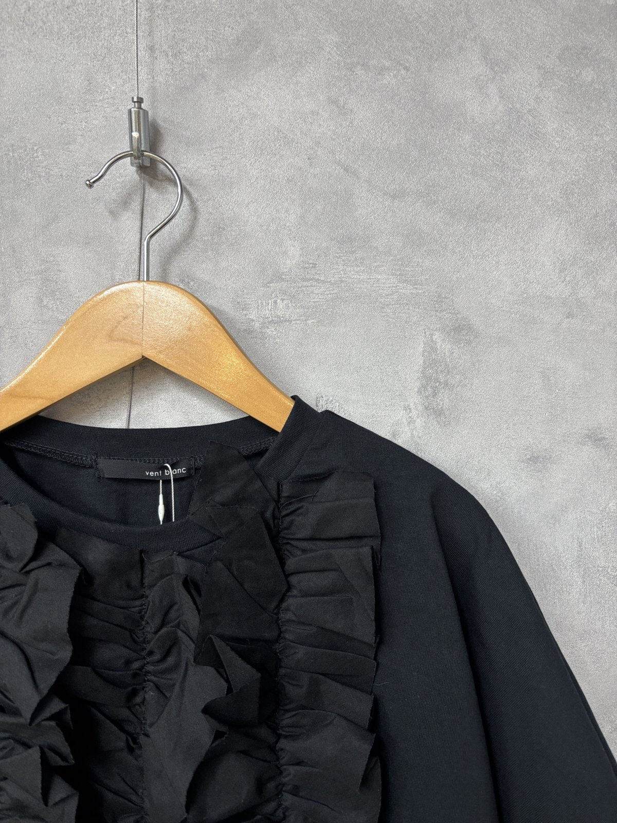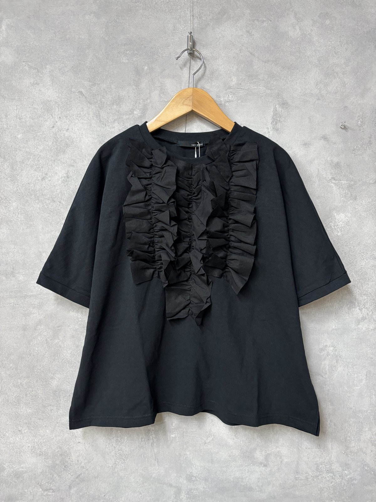 ヴァンブラン vent blanc 40/2コーマ天竺ドルマンフリルP/O BLACK サイズ;F