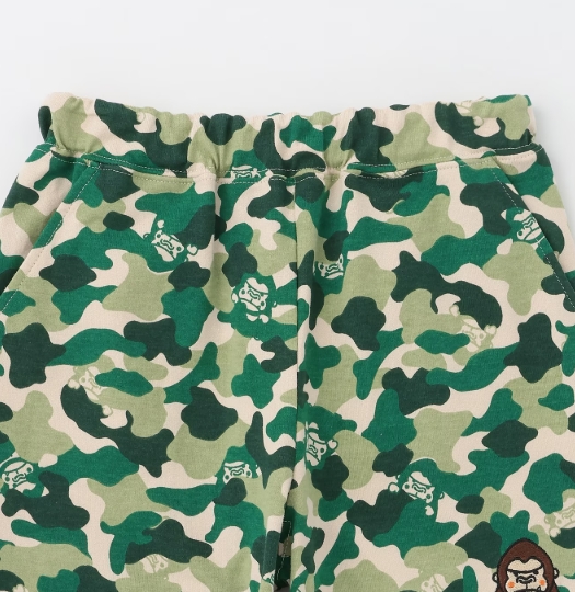 サイズ ウエスト 股上 股下 裾周り 80cm 43 19.5 4 35 90cm 46 20 5 36 100cm 48 20.5 7.5 37 110cm 50 21.5 9.5 39 120cm 52 22.5 11.5 41 - 迷彩柄の中に隠れているファニーゴリラがポイントのショートパンツです。