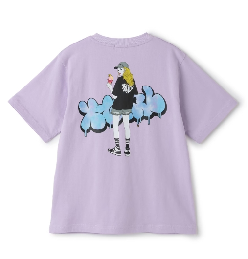 X-girl kids ガールイラストバックプリント ビッグTワンピ 61;ラベンダー