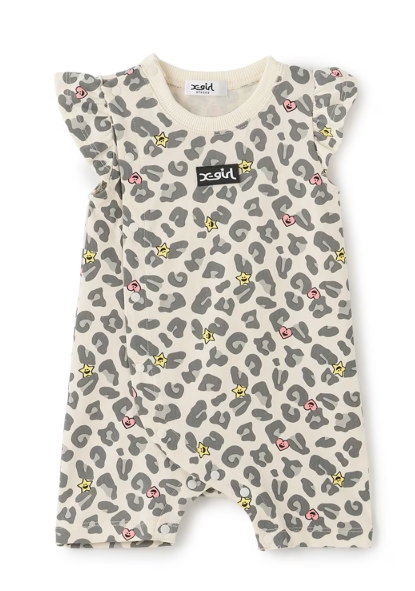 X-girl kids キラッキーレオパード総柄 ショートオール 05;アイボリー