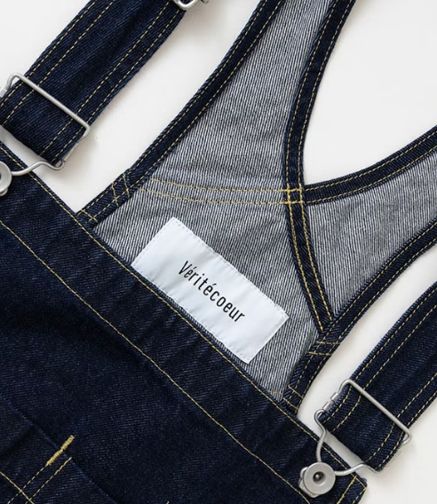 デニムの産地岡山で織られた生地を使用。ピュアインディゴを用いて糸の中心が白く残るロープ染色をしている為、アタリや色落ちの経年変化を楽しんでいただけます。