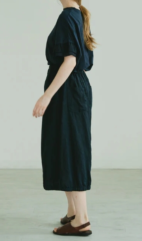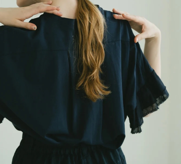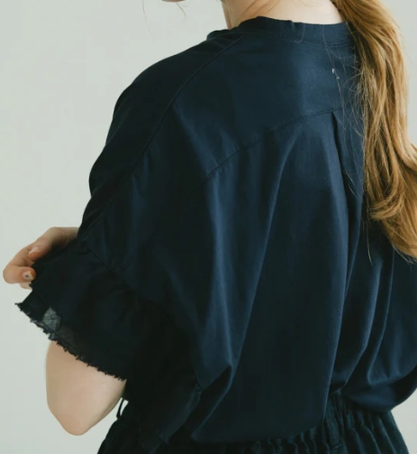 YARRA 異素材フリルスリーブカットプルオーバー 55;ネイビー FREE [YR-1621-255]