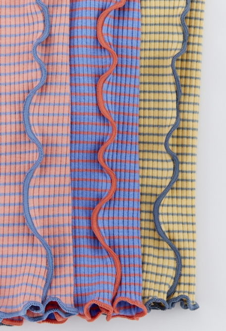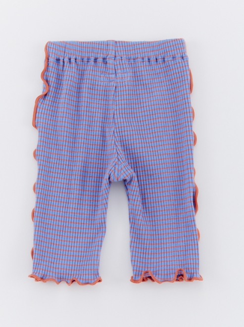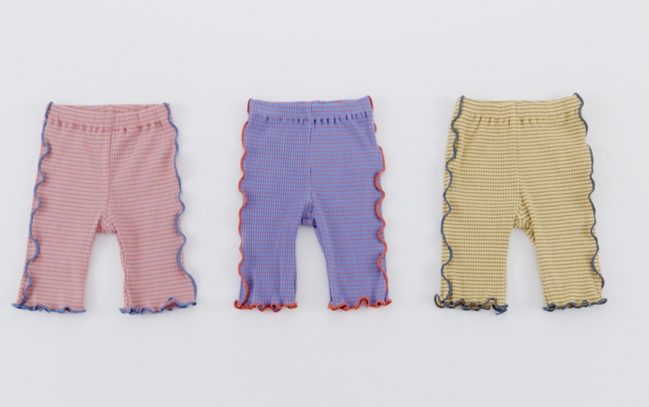 ・カラーリングが可愛い、ボーダー柄のメロウリブパンツ 。 ・柔らかく伸縮性のある素材で動きやすく、保育園やデイリー使いにおすすめ。 ・7分丈